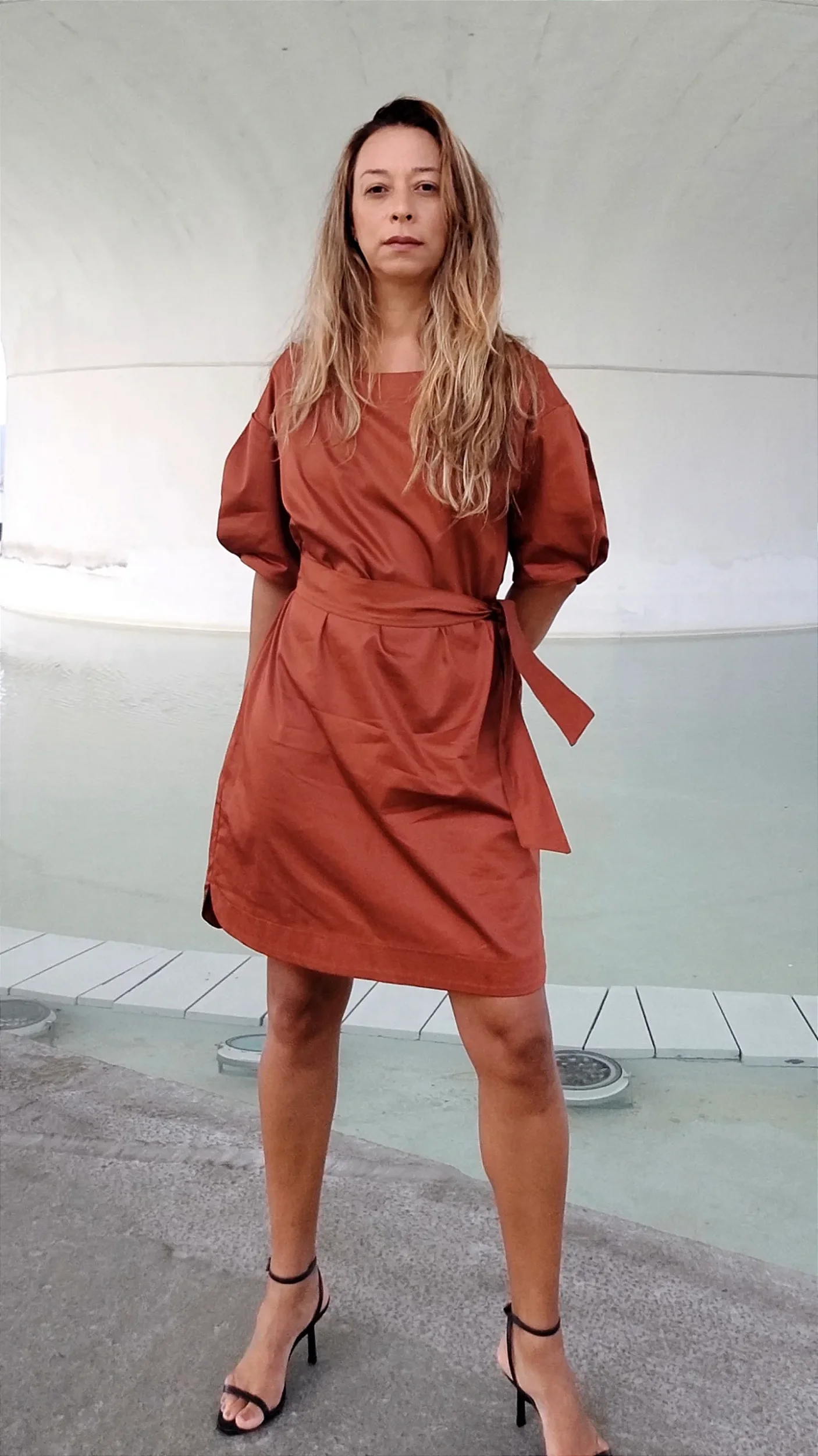 O Vestido Permanecer foi concebido para ser a peça definitiva no closet da mulher contemporânea. Com uma modelagem estruturada e minimalista, ele transita com perfeição da intensidade de uma reunião de negócios à leveza de um jantar em família ou um brinde ao pôr do sol. Em uma cor viva, presente, que abraça :TERRACOTA